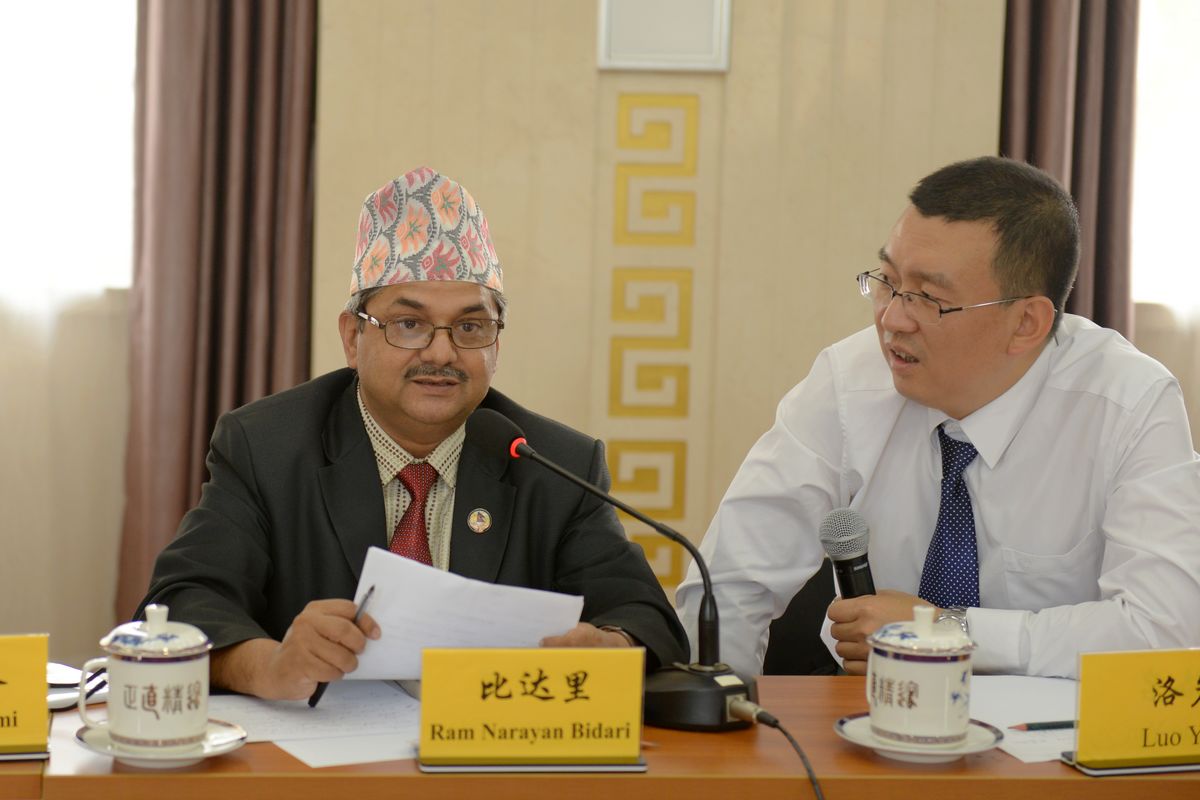 2014年8月18日下午,以尼泊尔制宪会议成员拉姆·纳拉扬·比达里(Hon. Ram Narayan Bidari)议员为团长的尼泊尔法律专家代表团一行5人访问法学所,并与我所学者进行座谈。法学所副所长莫纪宏研究员主持座谈会,科研处处长谢增毅副研究员、刘海波副研究员、黄金荣副研究员、支振锋副研究员,刘小妹副研究员、戴瑞君副研究员参加会谈。