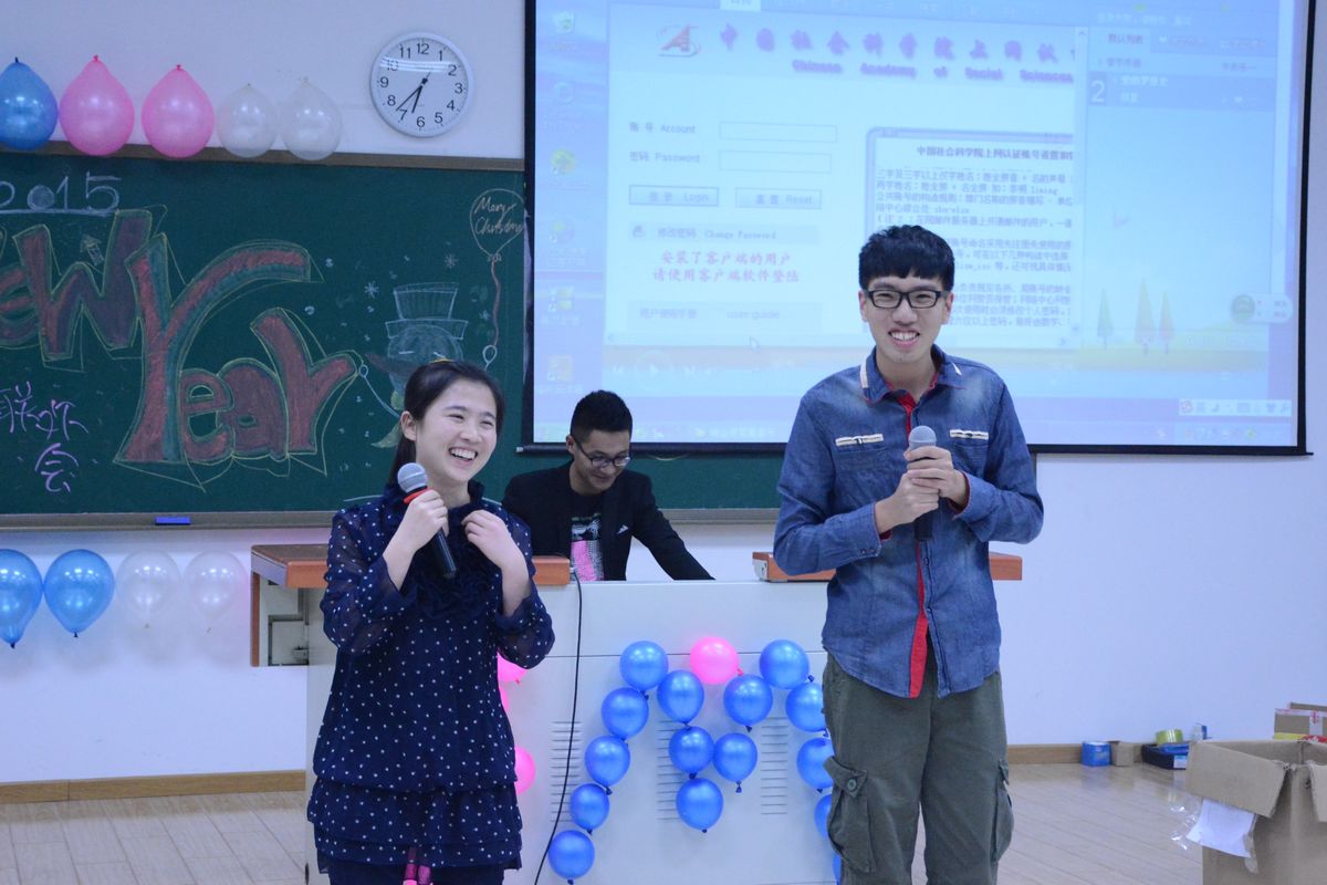 新年的钟声即将敲响,在这辞旧迎新、欢庆元旦之际,2014级法硕1班于12月21日晚上在教学楼221成功举办了一场热闹温馨的班级元旦联欢会。中国社会科学院法学研究所经济法研究室主任、法学系副主任、法硕办主任席月民老师、法学系副主任崔燕云老师、法硕1班班主任王帅一老师应邀参加了联欢。本次联欢会由温暖、亓悦然、王瀚宇、田原四位同学主持,节目形式多样,既有《宝玉考研》 、《黑龙哥的一天》 等贴近生活、积极向上的小品;又有情歌对唱、歌曲模仿秀等风格各异的歌曲;既有诙谐幽默的三句半和相声,又有帅气、精彩的武术表演,期间还穿插了如“五毛一块”、“认识相邻人”等富有创意的小游戏,整个联欢会气氛温馨活跃。最后,一段记录开学以来大家生活学习的小视频把联欢会推向了高潮。