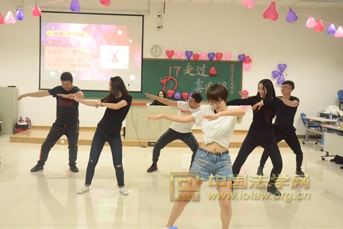 正式演出中,同学们纷纷拿出看家本领,一幕幕演出可谓精彩纷呈。17级硕士5班赵钧天的一首吉他弹唱《成都》勾起了大家对成都这座城市美好的回忆和憧憬。紧接着,由17级法硕1班颜欢、司雨、陈伟铭、于利航、陈柏澄、马沅为大家带来的舞蹈串烧High翻全场,获得老师和同学们的一致好评。“未老莫还乡,还乡须断肠”。《还乡》不仅是余光中先生对大陆深切的思乡曲,更是台湾同胞、全体中国人共有的思乡曲,带着对余光中先生的怀念与敬意,16级法律硕士邵玉雯、秦璇、姚小敏、于安民为大家带来了诗朗诵《还乡》。接下来是法硕办李辉老师和柳羽倩老师为大家带来了的经典歌曲《因为爱情》,优美的旋律和动听的歌声让人不禁陶醉其中,同时也将整场联谊会推向高潮。