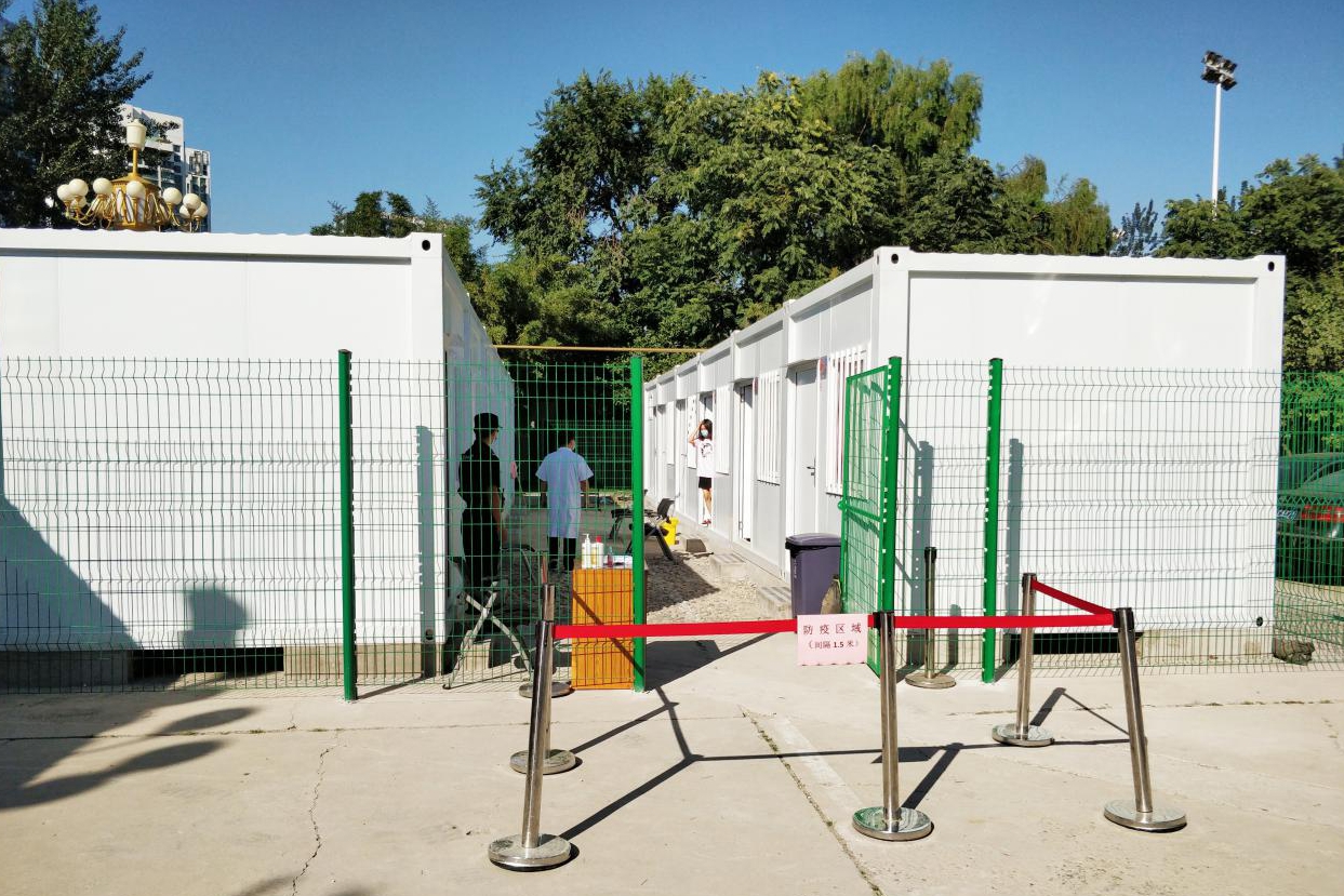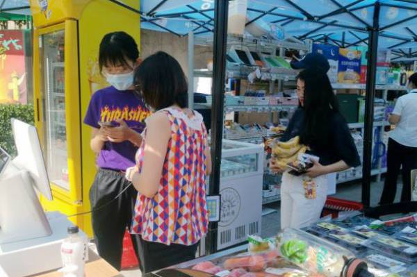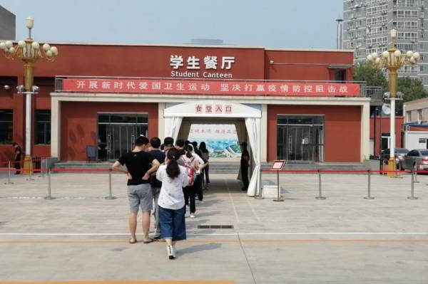 同学们眼中的校园变化颇大。为保障学生校内生活便利,望京校区与苏宁易购、家乐福超市合作,在校内设立临时超市,出售部分日用品,广大师生也可以通过线上预定并由家乐福送到学校的方式购买自己需要的生活用品。食堂工作人员根据防疫要求,在每张餐桌上都设置了透明隔板,保证学生堂食的安全与方便。另外,学校新修了操场,专门建了隔离观察室、体温测试棚等设施。