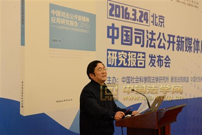 中国社会科学院法学研究所、新浪网法院频道、中国社会科学出版社24日在京联合发布了《中国司法公开新媒体应用研究报告(2015)——从庭审网络与微博视频直播切入》。来自最高人民法院及北京等20个省区市高级人民法院的相关负责同志,中国法学会、北京大学、西南政法大学、中国社会科学院法学研究所、中国社会科学出版社以及《人民日报》、《光明日报》、《法制日报》、新浪网法院频道、中国社会科学报网等单位的专家学者和新闻记者共80余人参加了发布会。