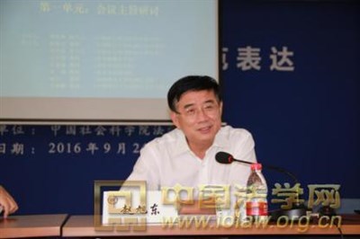 第一单元为“会议主旨研讨”,由中国社会科学院法学所邹海林研究员主持。中国政法大学民商经济法学院赵旭东教授、中国社会科学院法学研究所孙宪忠研究员、清华大学法学院朱慈蕴教授、国家检察官学院石少侠教授、南京大学法学院范健教授、西南政法大学民商法学院赵万一教授、中国政法大学民商经济法学院管晓峰教授分别做主题发言。