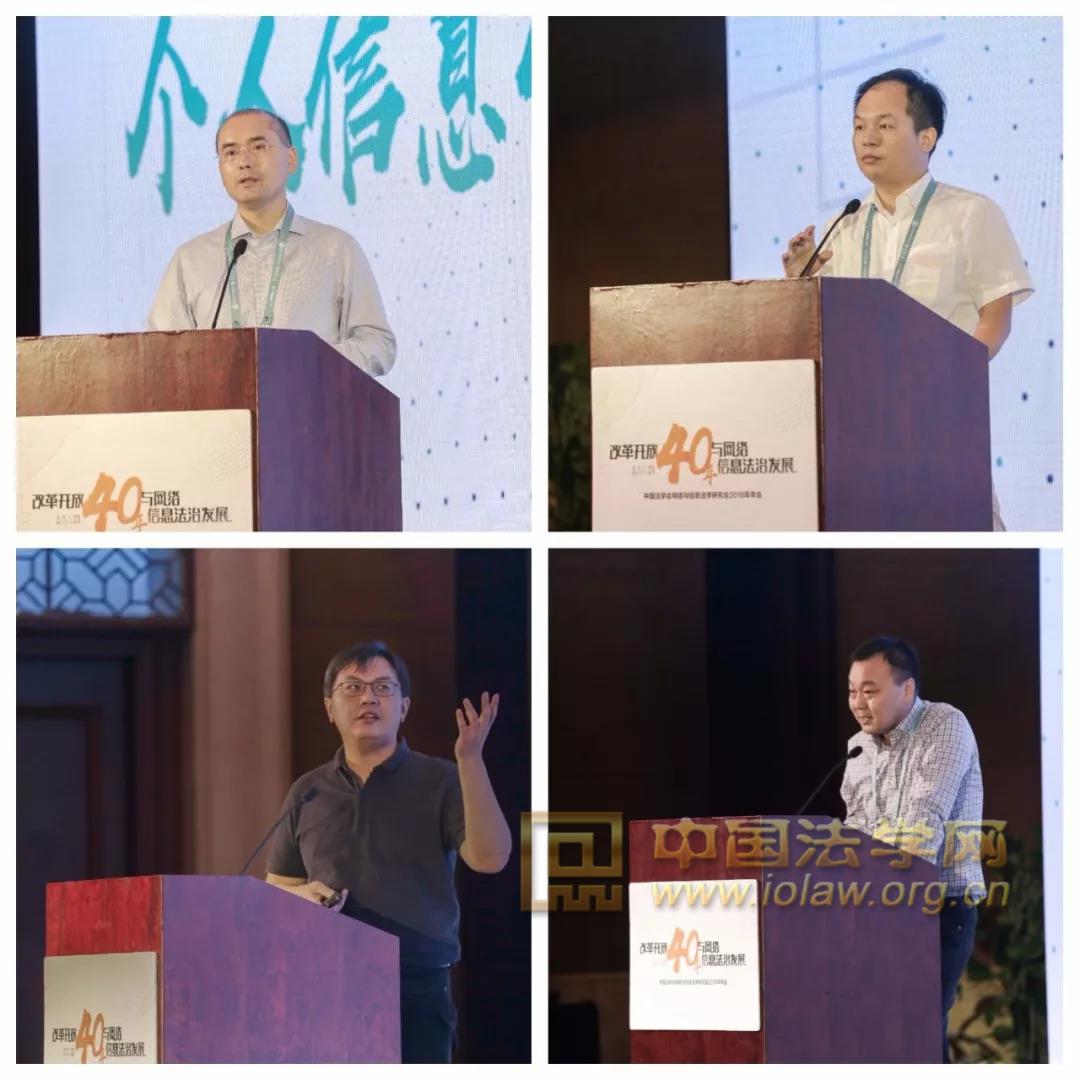 第一单元主题为“个人信息保护的法律应对”,由中国法学会网络与信息法学研究会副会长、中国移动法务部副总经理于莽主持。中国法学会网络与信息法学研究会常务理事、百度公司法务部总经理谭俊,中国法学会网络与信息法学研究会理事、新浪公司互联网法律研究院秘书长王磊,中国法学会网络与信息法学研究会理事、今日头条法务总监邰江丽作主题报告,中国法学会网络与信息法学研究会常务理事、中央网信办网络综合协调管理和执法督查局副局长尤雪云进行点评。